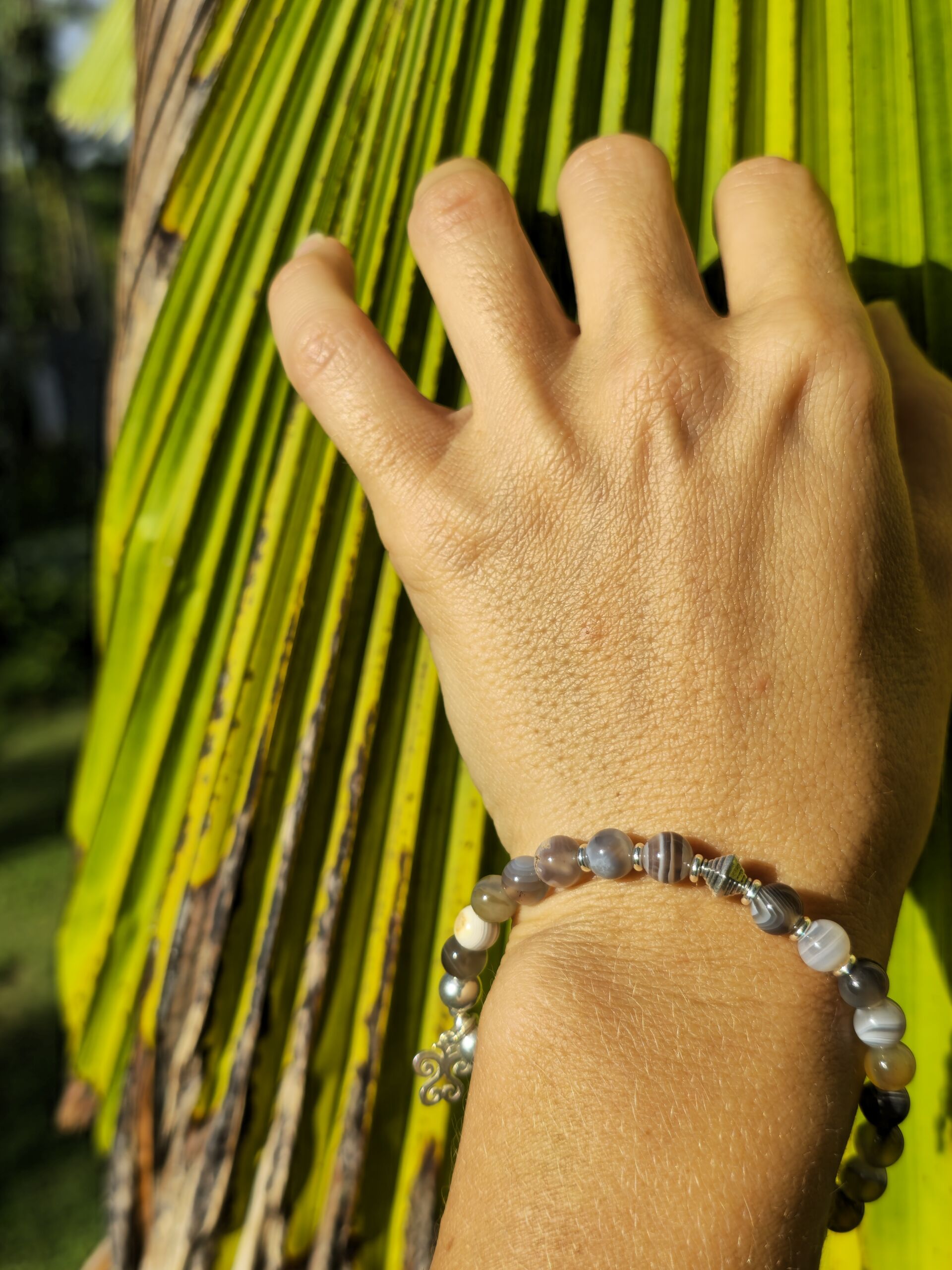 Quando le cose sono confuse, l'Agata Botswana apporta chiarezza e aiuta a mettere le cose nel loro giusto equilibrio, ricordandoti che sei Tu a possedere sempre il controllo.
