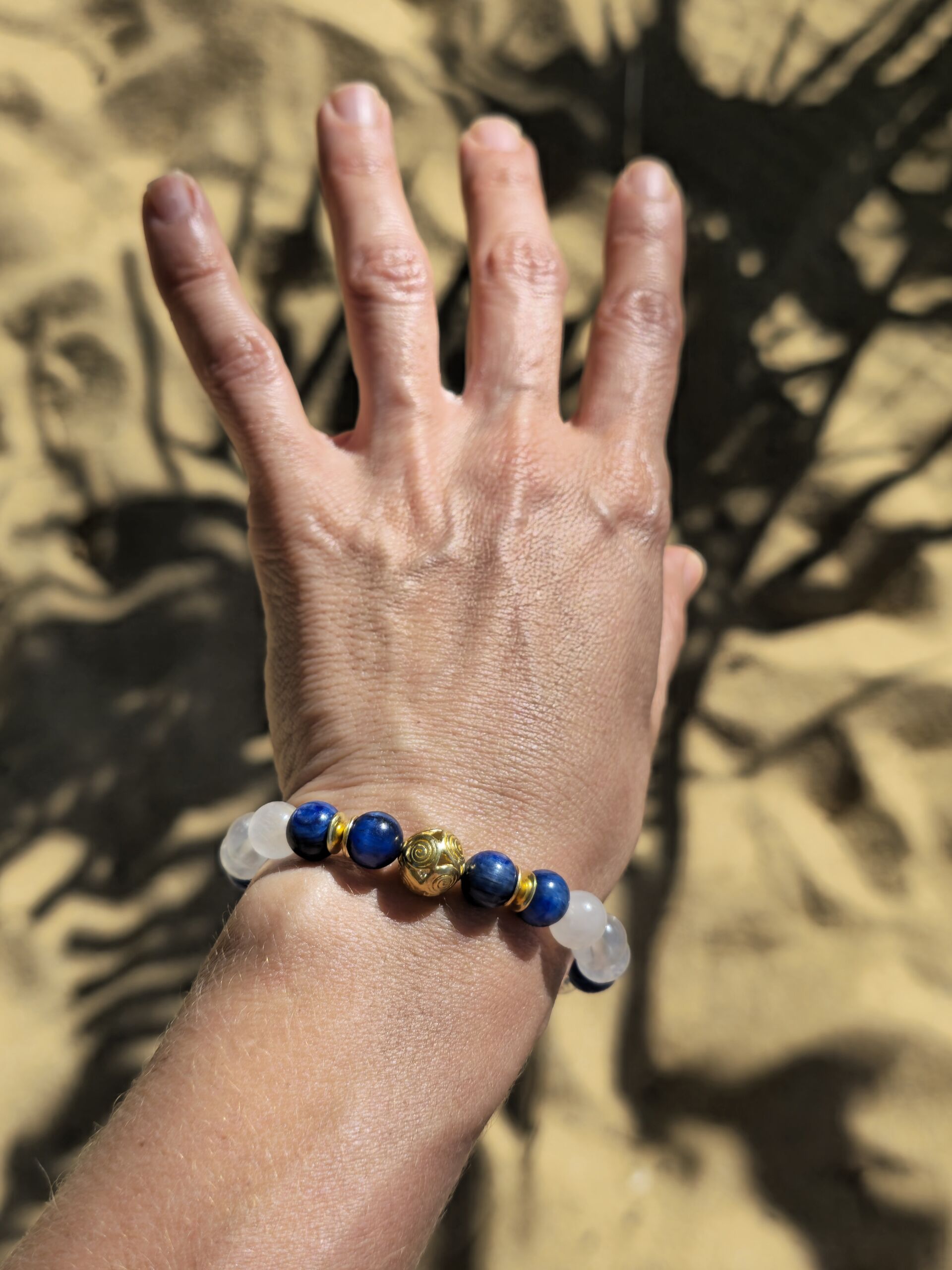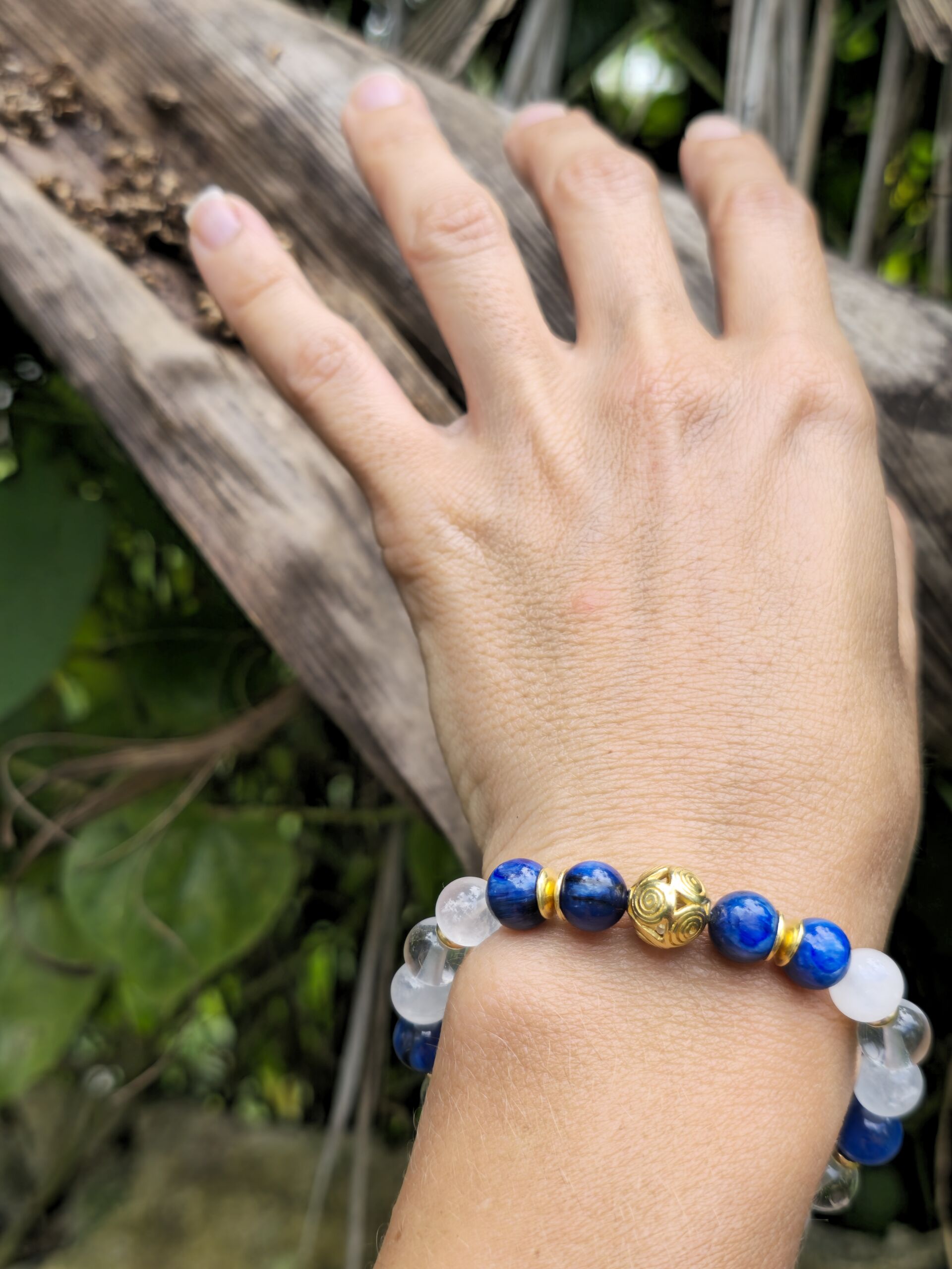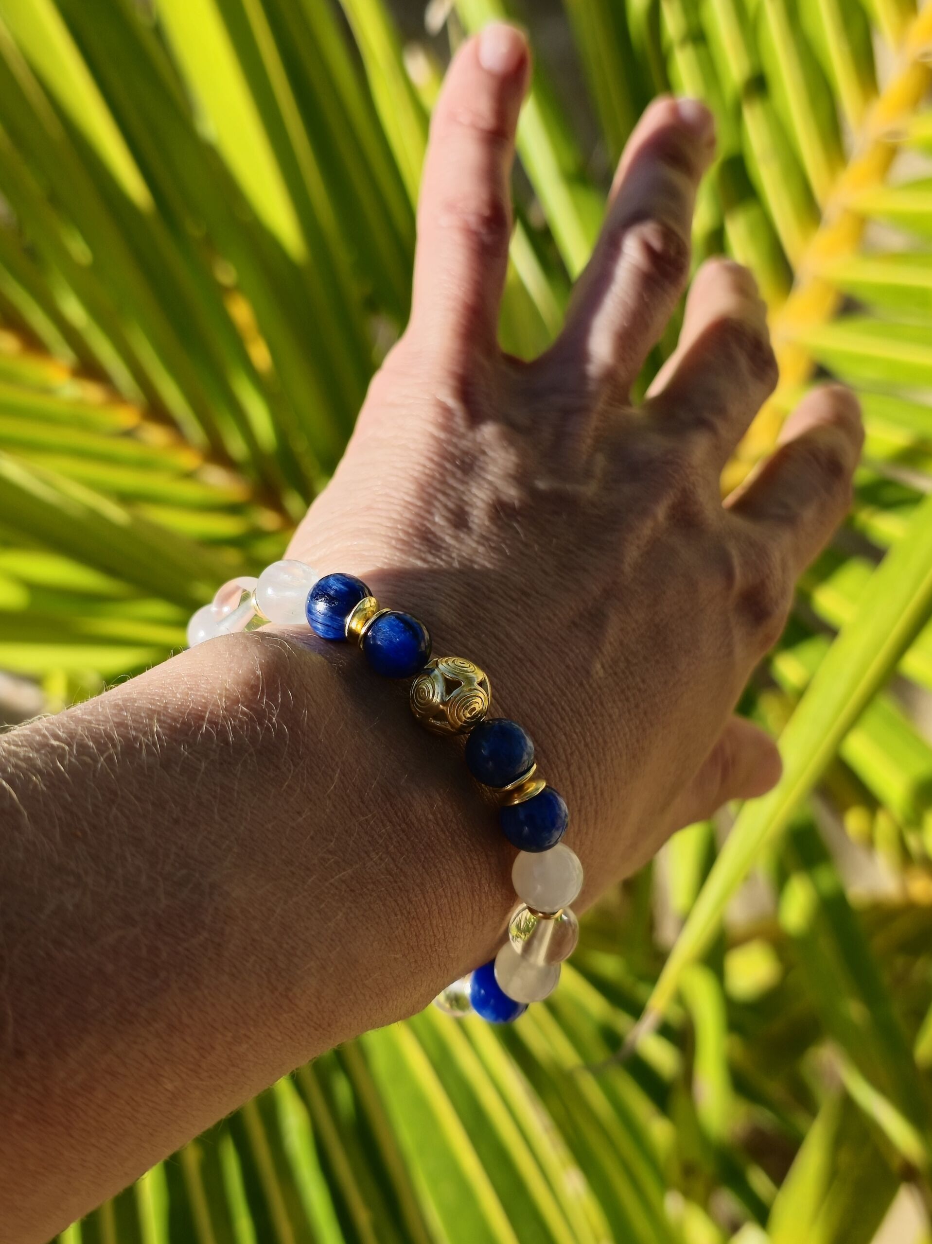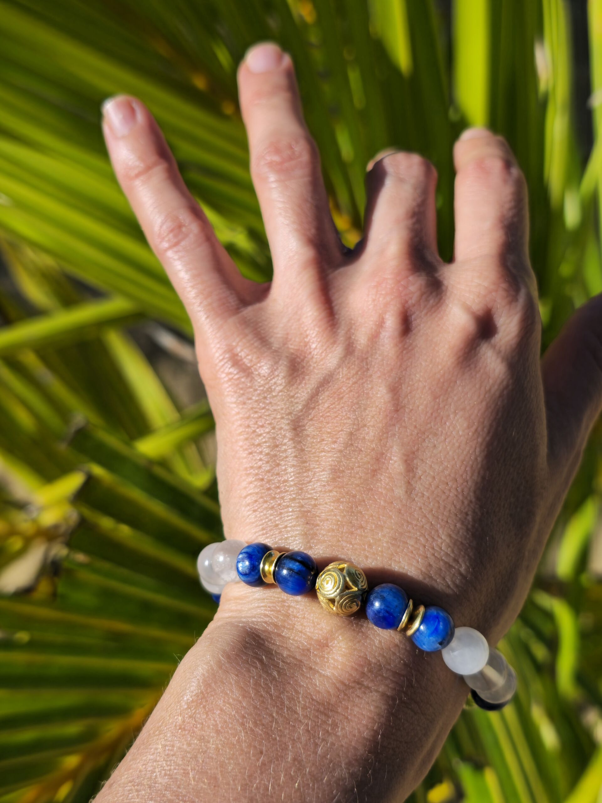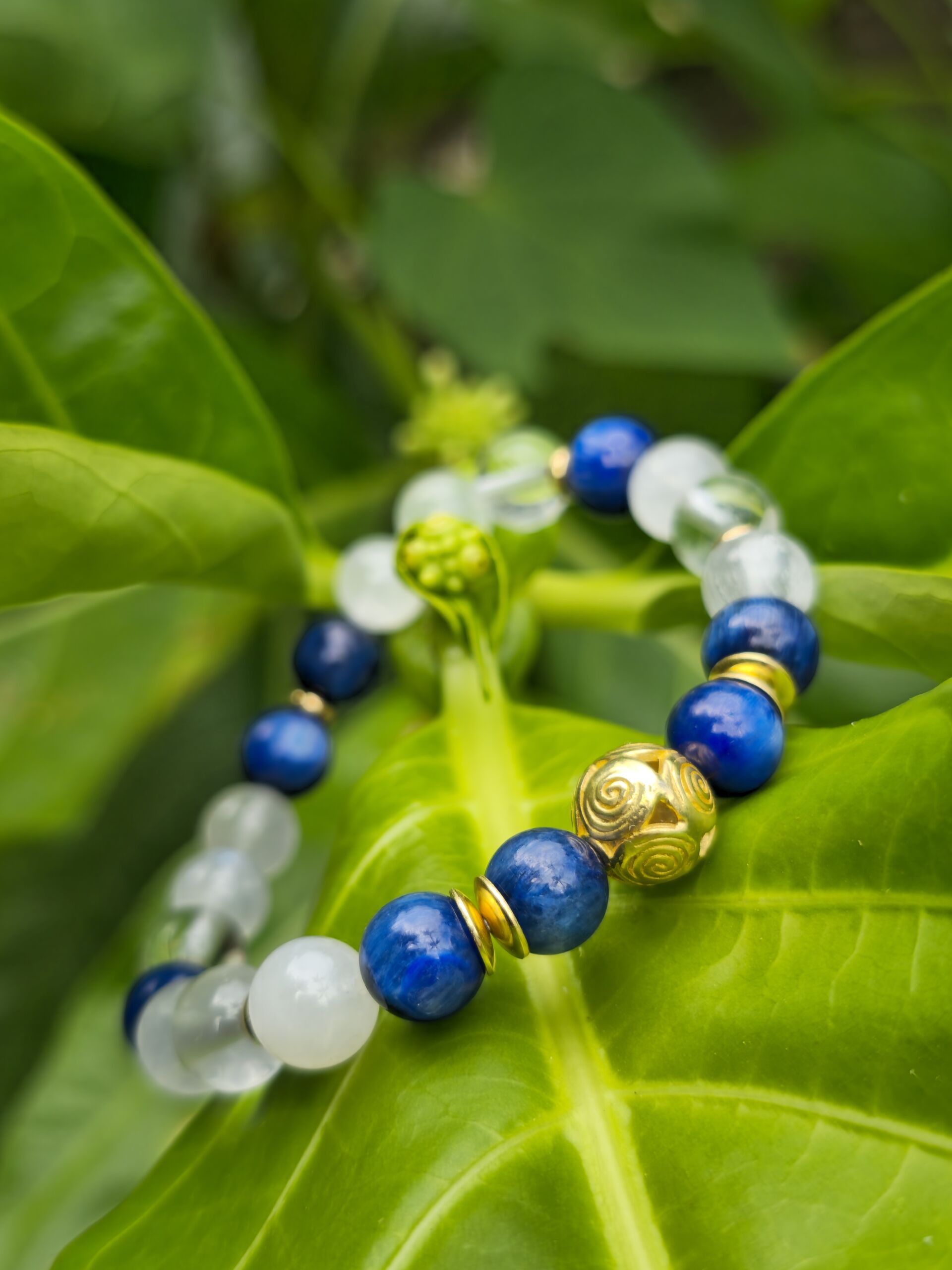 Cianite blu Labradorite bianca Quarzo ialino, centrale perla con lavorazione indonesiana.