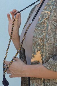 Fumigazione delle Mālā con la Salvia Bianca prima di confezionarle