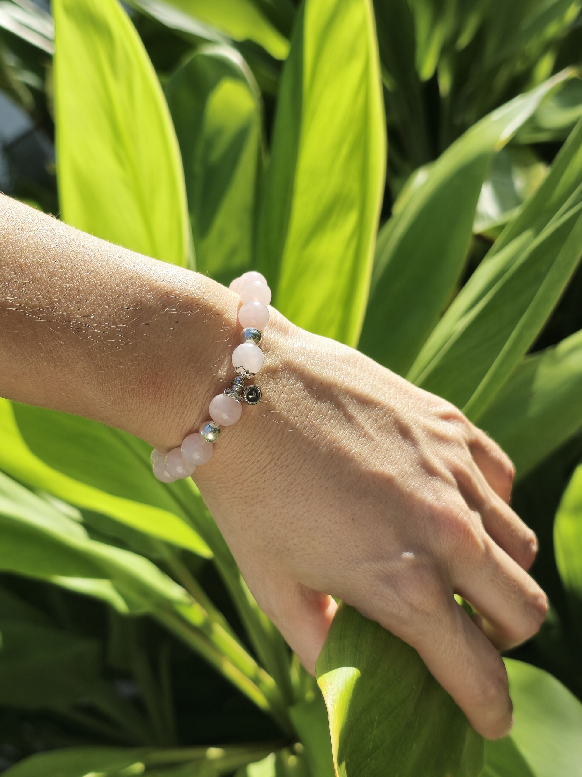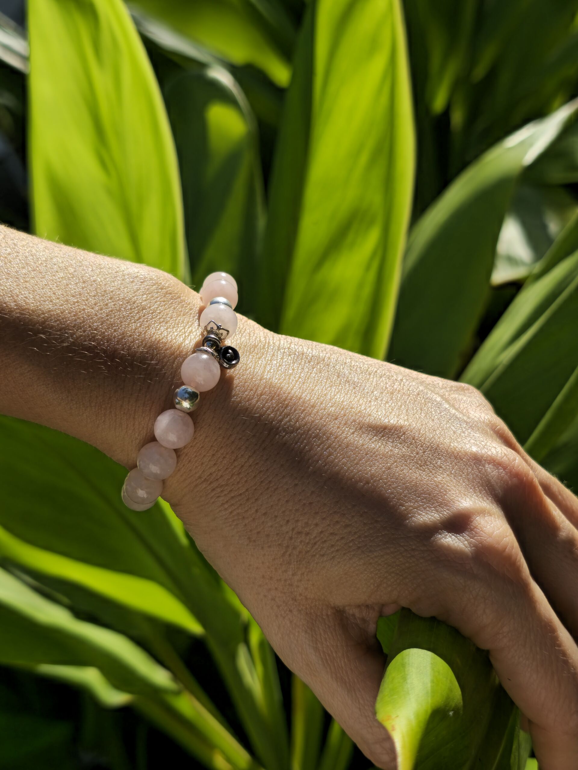 Quarzo rosa del Madagascar, perla con lavorazione indonesiana.