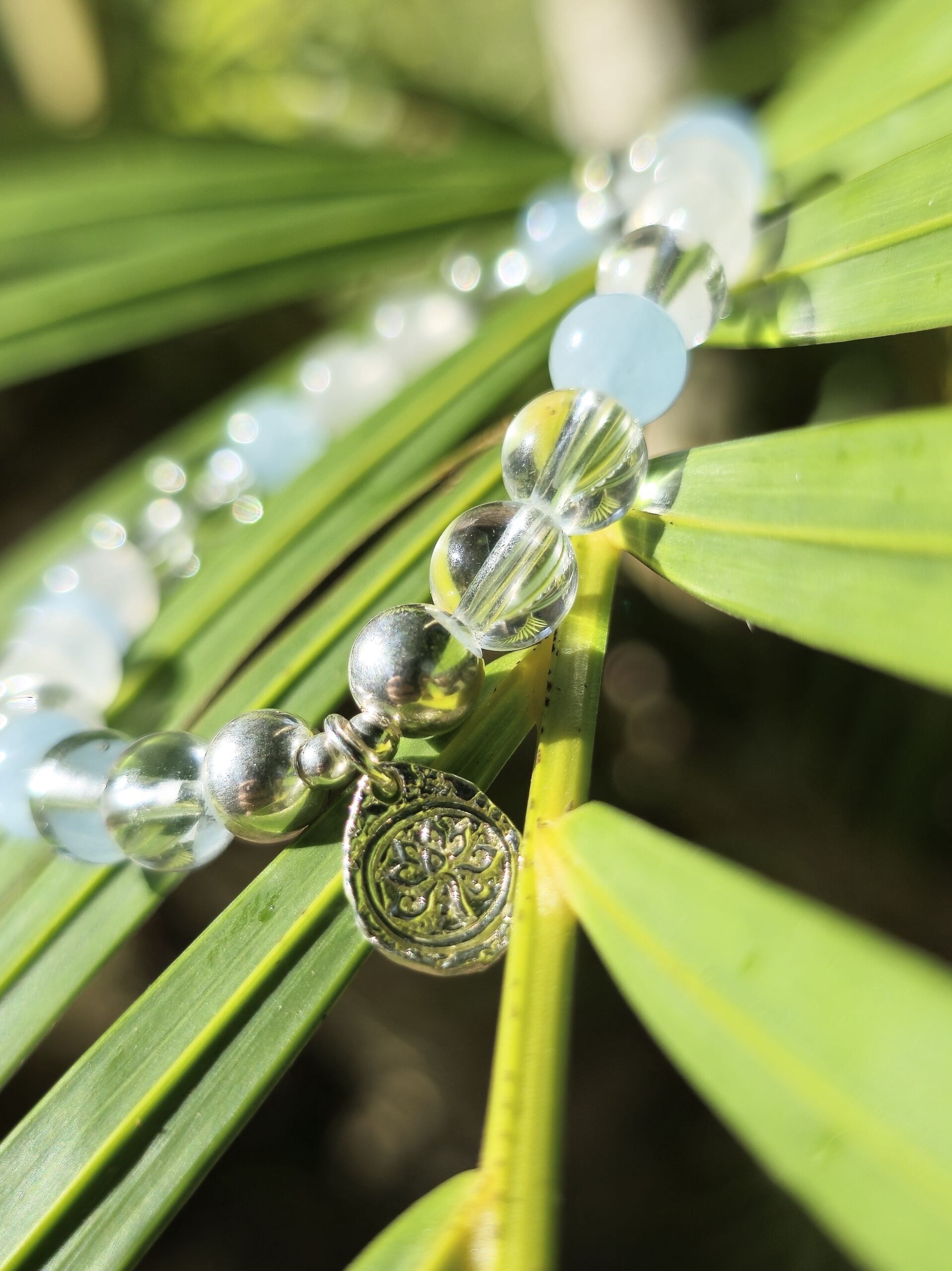 Acquamarina, Labradorite bianca, Quarzo ialino. ciondolo Fiore di Loto (con lavorazione in entrambi i lati).