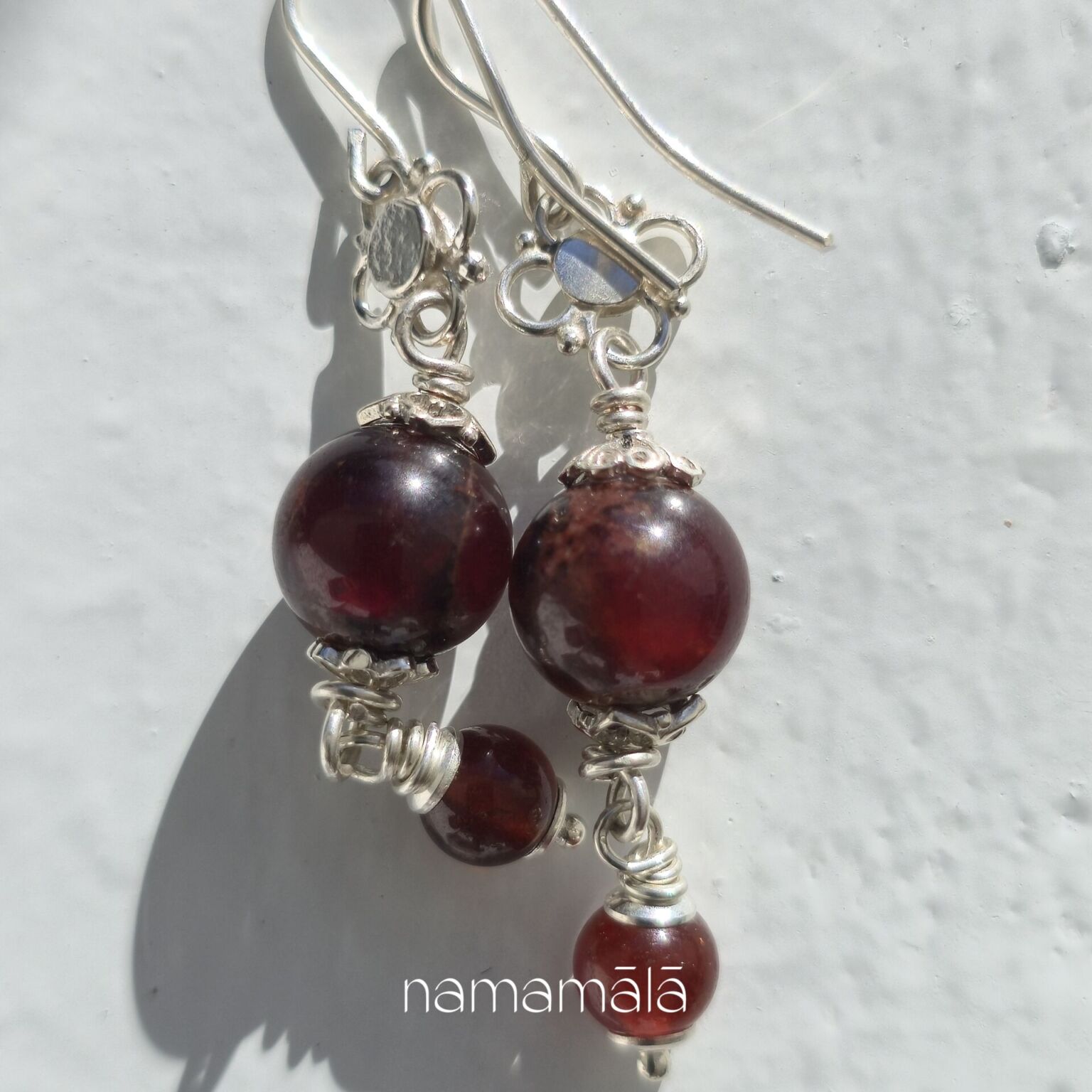 Mala realizzata con 108 grani di 8 mm predisposti in una sfumatura cromatica che combina la lucentezza arancione della Spessartite, le sfumature rosso-violacee dell’Almandino, il rosso intenso del Pyrope (in rondelle sfaccettate) e i toni caldi dell’Hessonite (quest’ultimo inserito come marcatori). Guru perla Karen Hill Tribe con decorazione spirale e fiori. Fiore di Loto e Nappina in seta.
