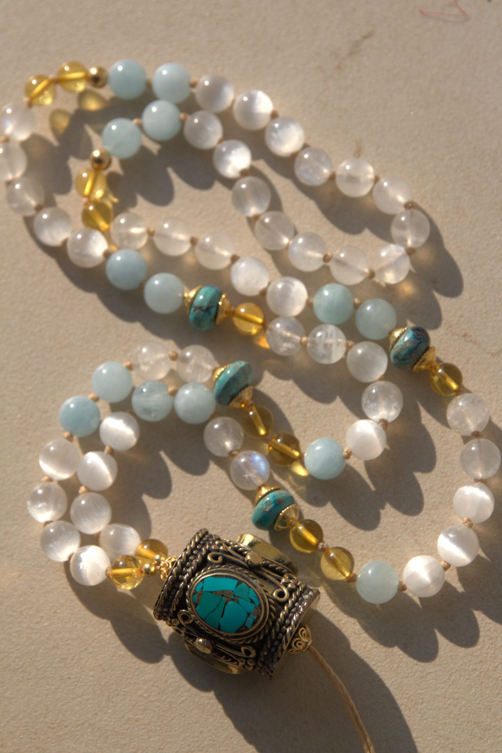 Ogni Mālā viene fumigata prima della spedizione e confezionata nella sua borsa morbida e originale. Riceverai Garanzia e Certificazione con la descrizione di pietre e materiali, una guida per la meditazione e un panno per la pulizia dell'argento.