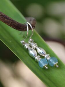 Full Mala 108 pietre di Acquamarina 6 mm. Marcatori perle argento ed inserite nel conteggio ogni 9 grani. Guru perla a pendente con lavorazione indonesiana. Tutto è argento 925.