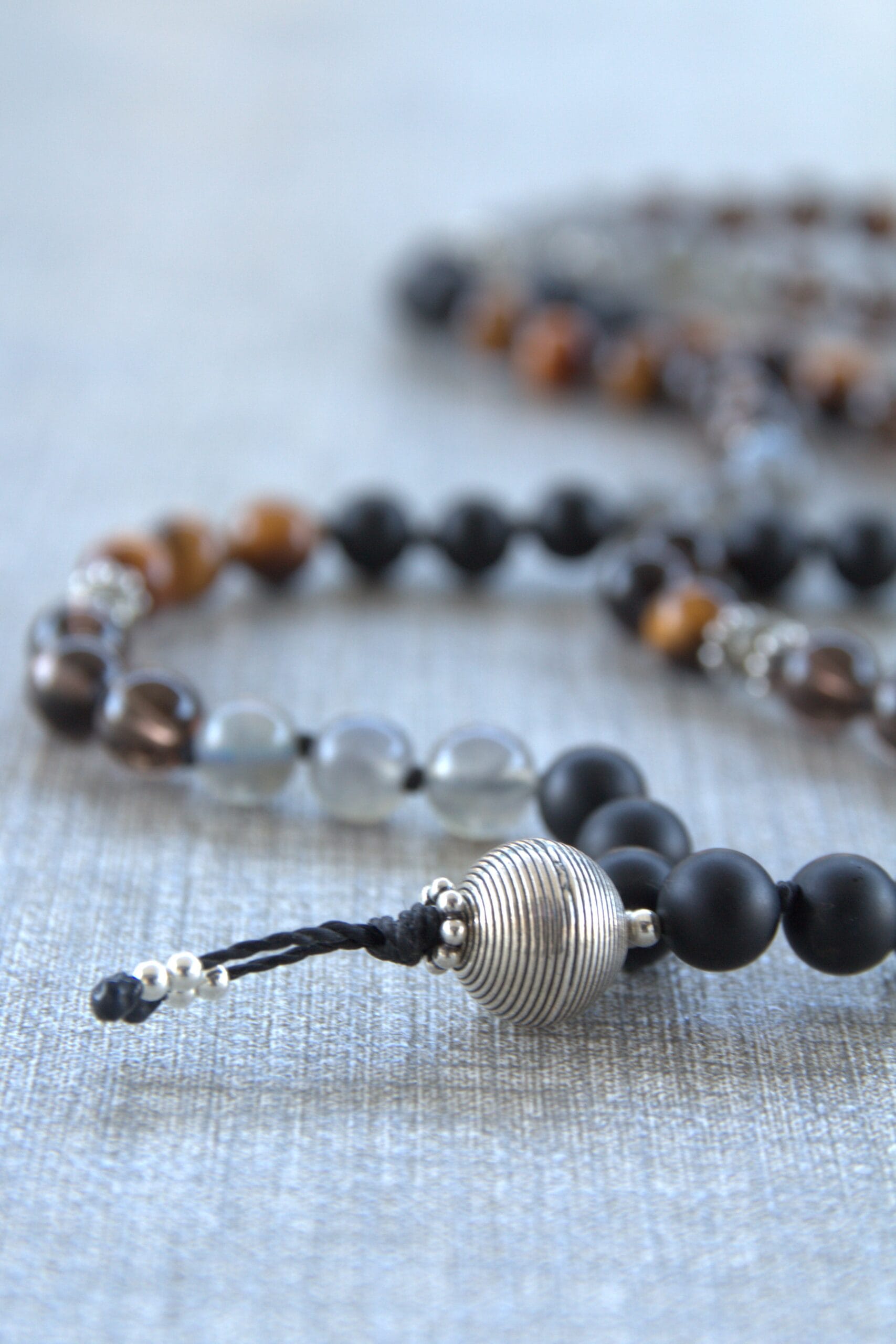Ogni Mālā viene fumigata prima della spedizione e confezionata nella sua borsa morbida e originale. Riceverai Garanzia e Certificazione con la descrizione di pietre e materiali, una guida per la meditazione e un panno per la pulizia dell'argento.