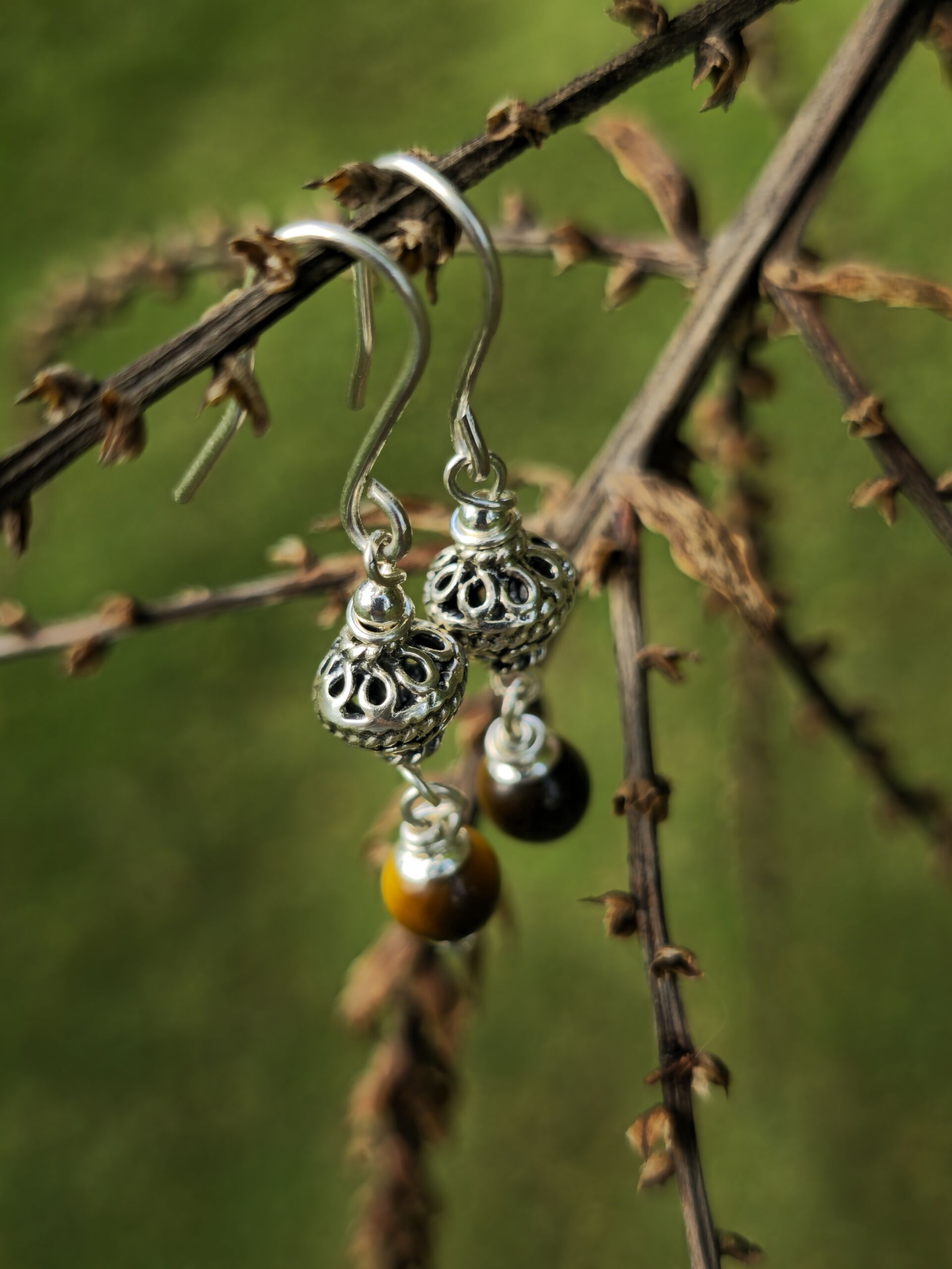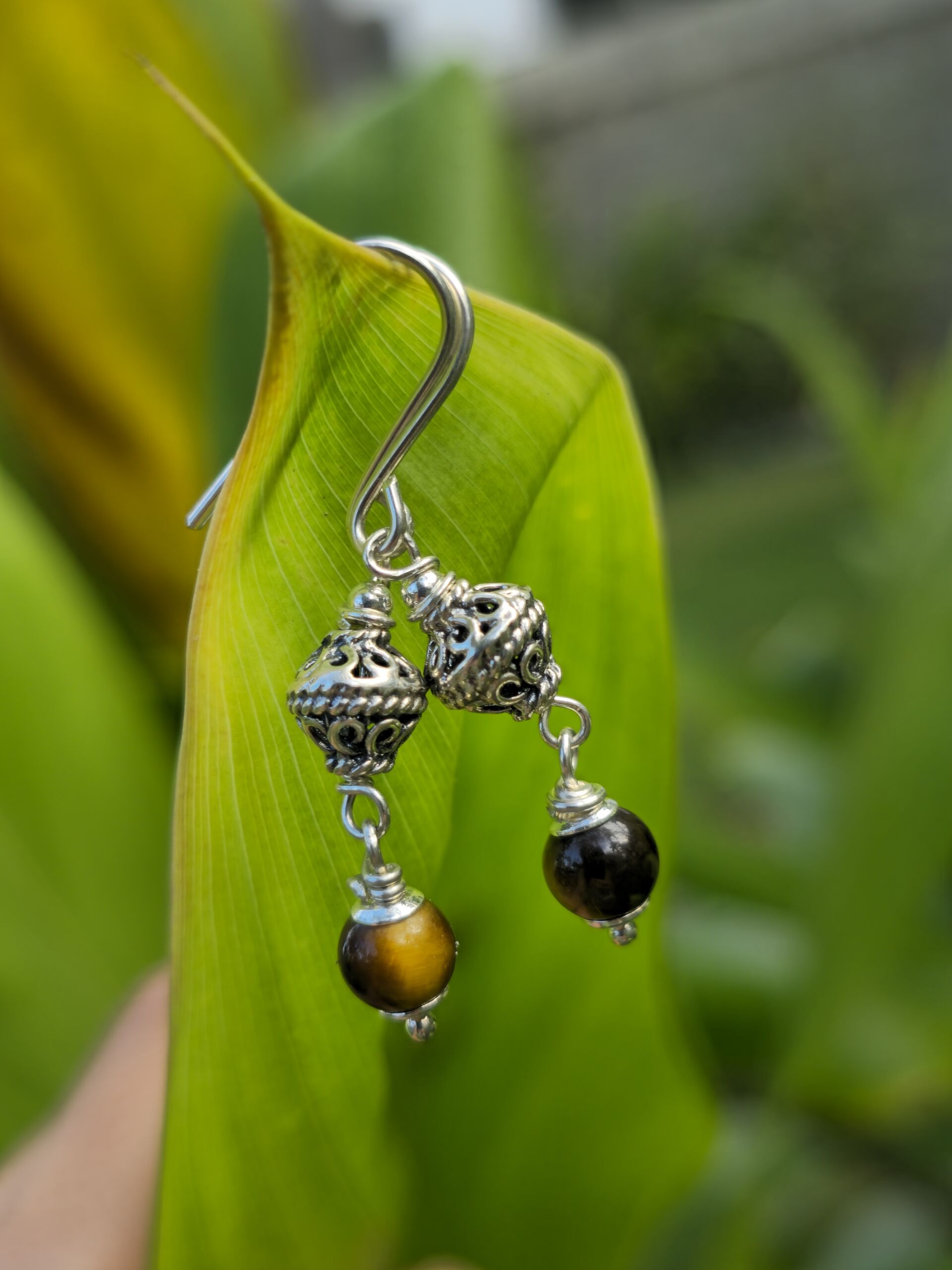 Occhio di Tigre, perle con lavorazione indonesiana.