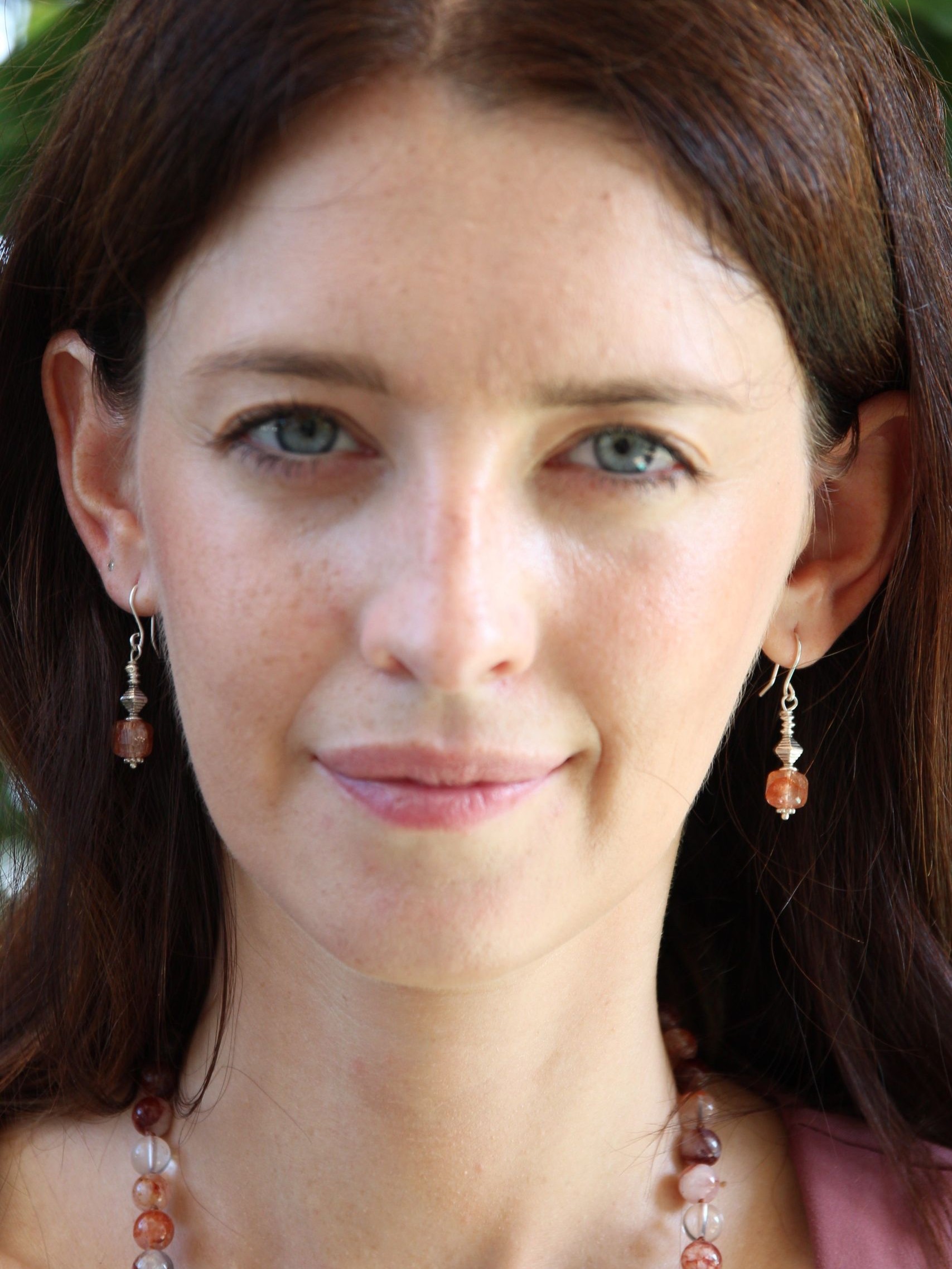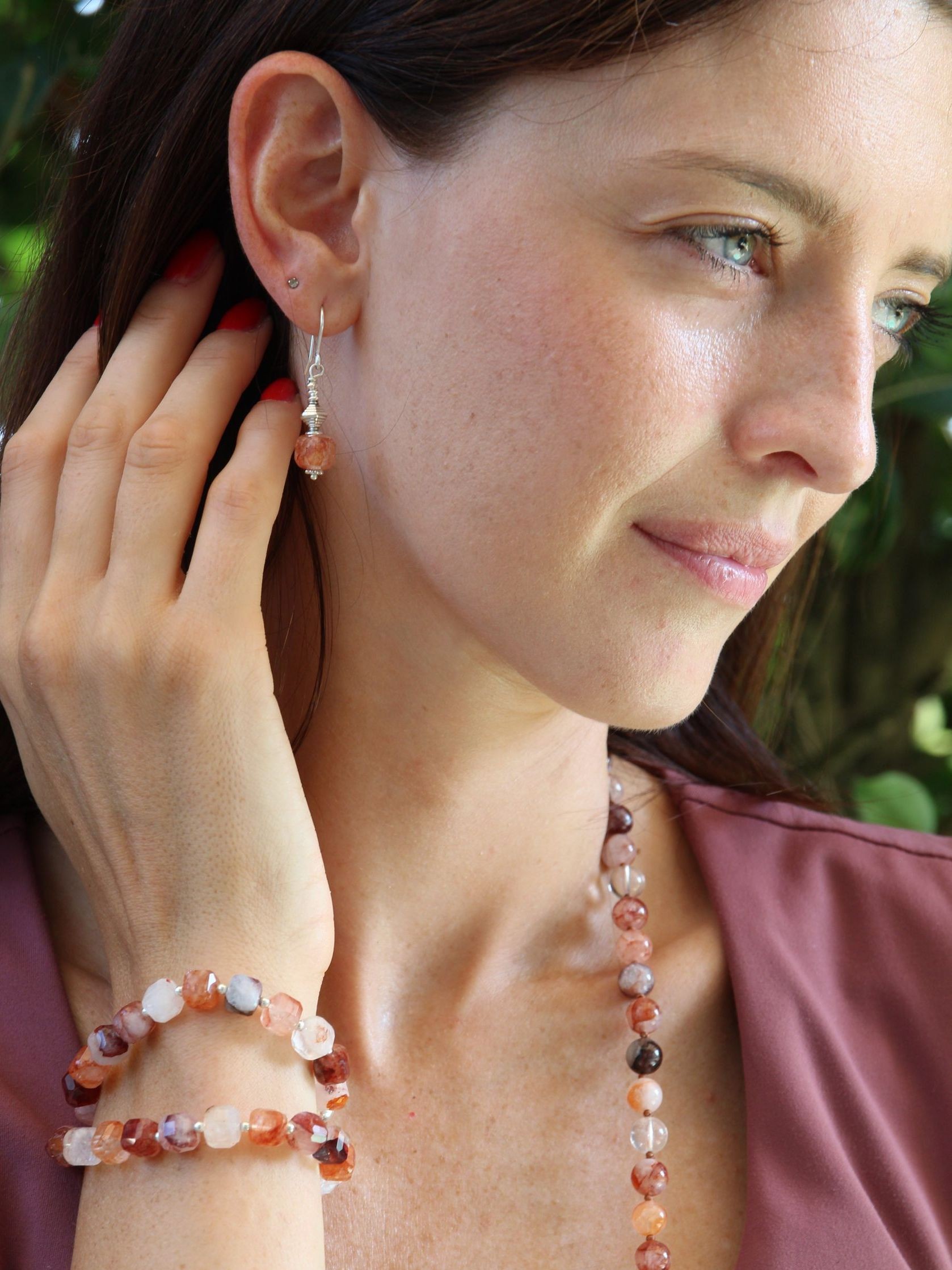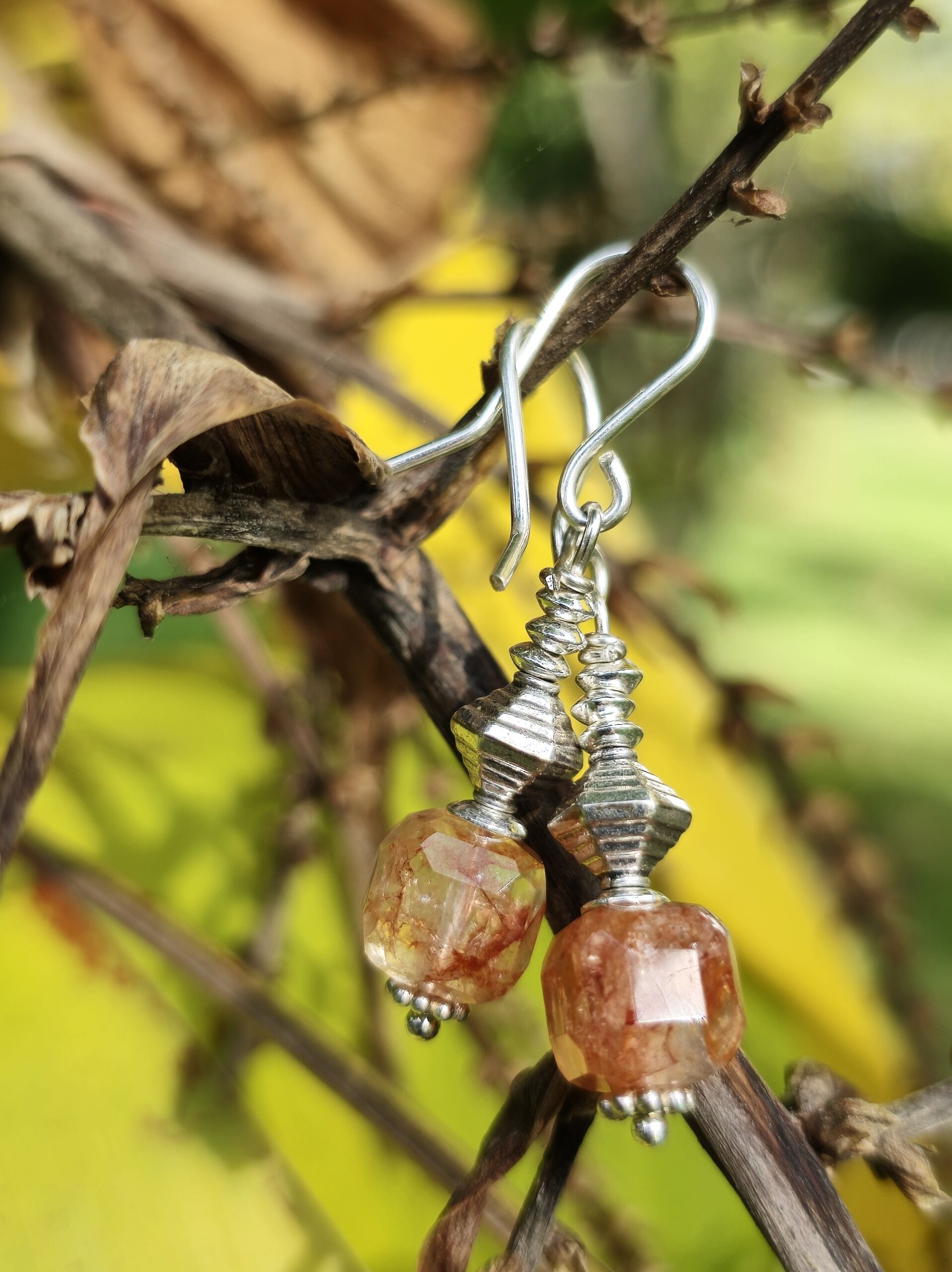 Cubi di Quarzo Ematoide rosso, perle con lavorazione indonesiana.