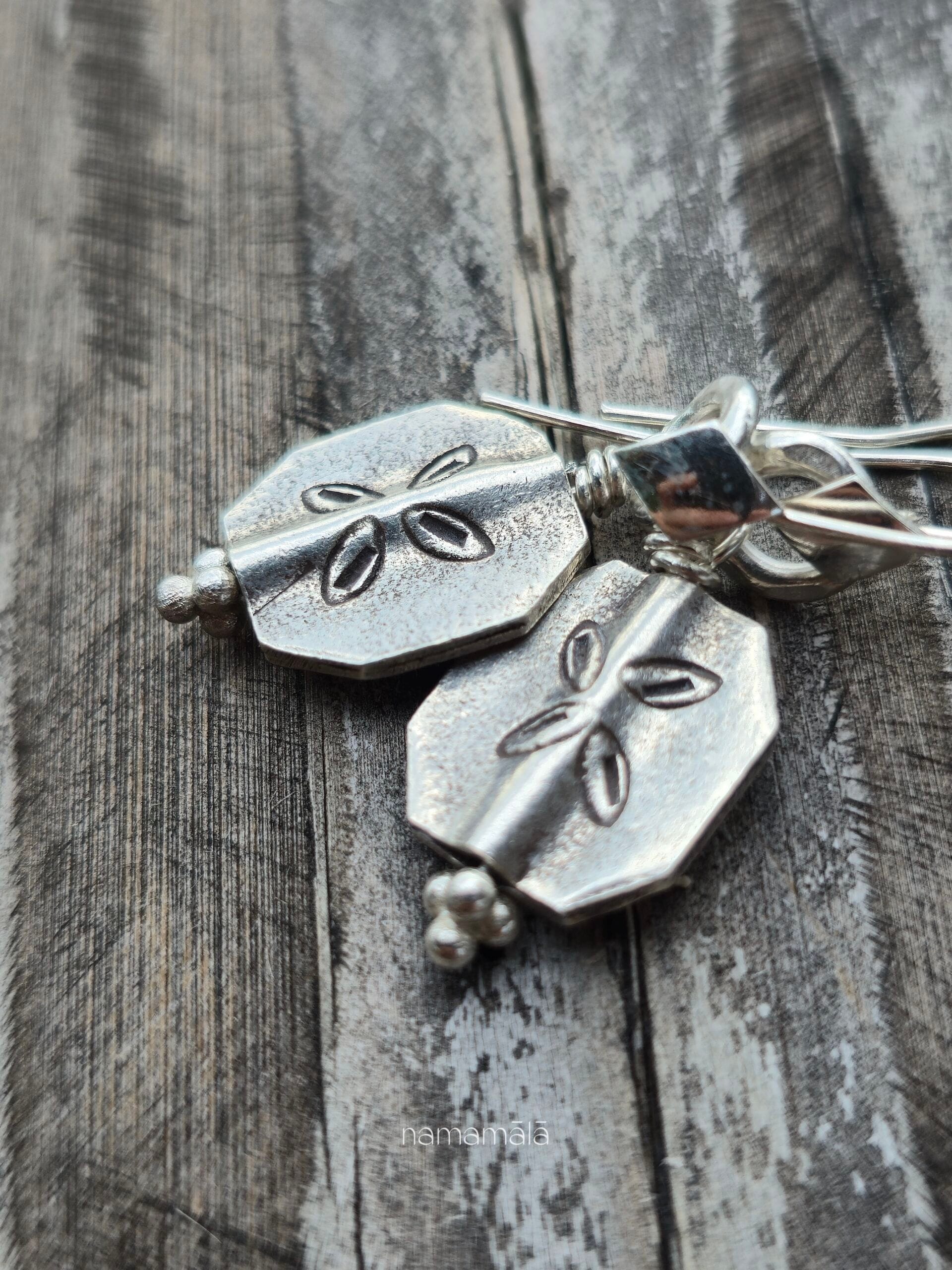 L’essenza del minimalismo e della forza generatrice della terra. Due piastre ottagonali in Argento Karen, impreziosite da quattro incisioni centrali che evocano la simbologia antica del seme e dei quattro punti cardinali. Un talismano contemporaneo che racchiude in sé l’energia dell’inizio.