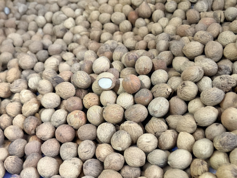 Il frutto è inizialmente una piccola palla verde, che con la maturazione assume una colorazione marrone o nero-rossastra. La buccia è dura e al suo interno contiene piccoli semi bianchi. Non è permesso utilizzare il legno o le radici dell’albero, preservando così la sua integrità e la sua longevità.